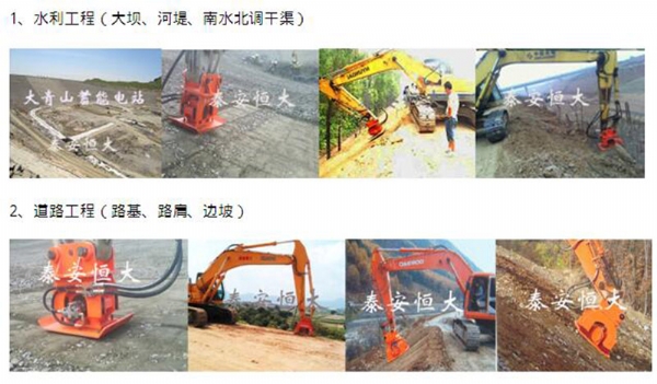 主要應用于橋涵背、新舊路結合部、路肩、邊坡等公路、鐵路路基夯實,堤壩及邊坡夯實,民用建筑地基、建筑溝槽及回填土夯實,混凝土路面修補夯實,管道溝槽及回填夯實、管側及井口夯實等。必要時用于打拔樁及破碎。
